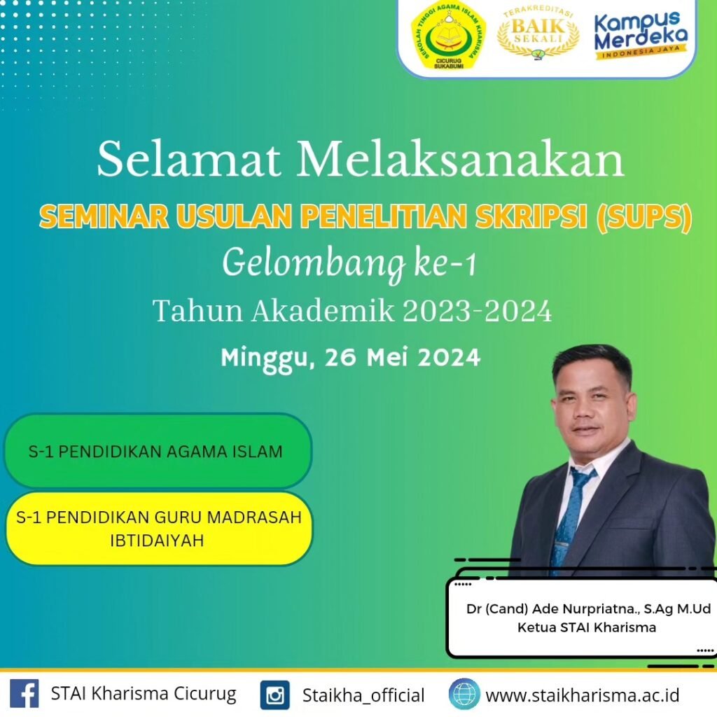 Civitas Akademika Sekolah Tinggi Agama Islam Kharisma Cicurug Sukabumi Mengucapkan Selamat melaksanakan kegiatan Seminar Usulan Proposal Skripsi Tahun Akademik 2023-2024.
